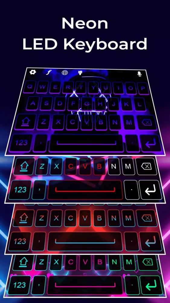 Experience an enhanced typing adventure with the Neon Led Keyboard & Themes application. Our dynamic keyboard customizer app brings vibrant color RGB backlit effects to your fingertips. With Love Keyboard Theme, you'll enjoy a comprehensive suite of features including word correction, word suggestions, voice input, and multilingual support. Our keyboard wallpaper app continuously evolves with new features to ensure the best possible keyboard experience.
