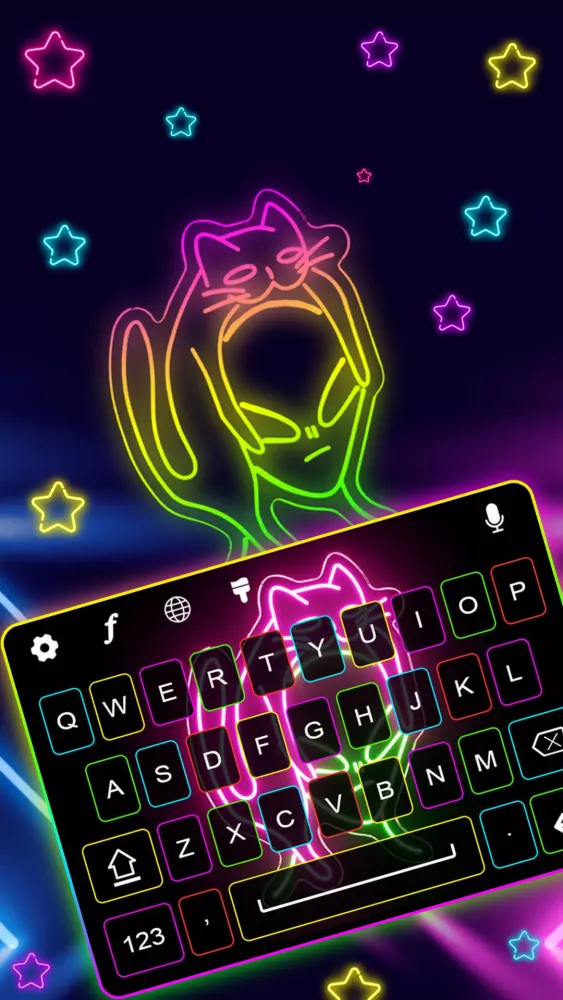 Our Magic Keyboard supports multiple languages, making it perfect for users around the world. Switch between different keyboard layouts like Arabic, English, French, Azerty, Hindi, Turkish, and Spanish. Personalize your neon frenzy color keyboard theme to create stunning and cool keyboards for mobile devices.