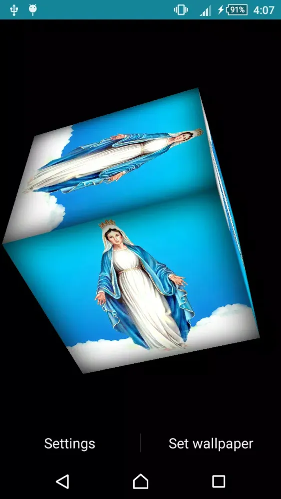 Virgin Mary Live Wallpaper offers a unique and captivating experience with its 3D photo cube that displays images of the Virgin Mary. This application is designed to bring a sense of peace and tranquility to your device's home screen.