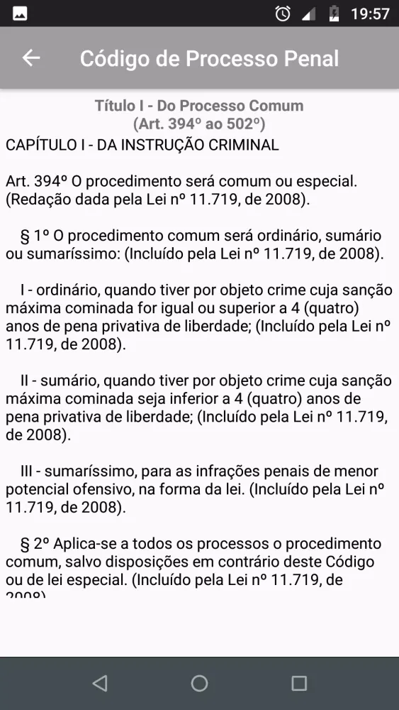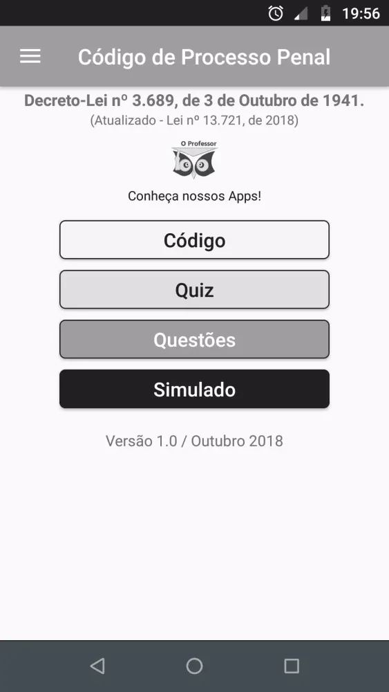 The Professor - Criminal Law application is a comprehensive tool designed for mobile devices, aiming to make the Penal Code (Decree-Law nº 2,848, December 7, 1940), Code of Criminal Procedure (Decree-Law nº 3,689, October 3, 1941), Criminal Execution Law (Law No. 7,210, July 11, 1984), and other special laws related to Criminal Law accessible to all interested parties preparing for public or private competitions.