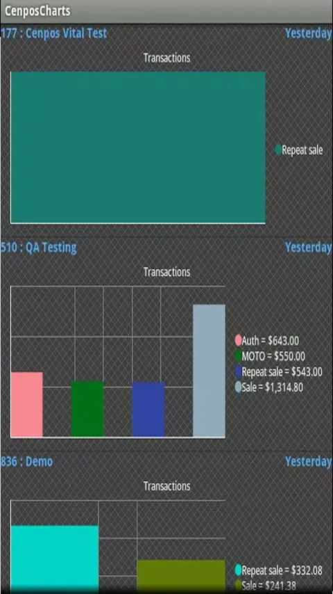 CenPOS Charts simplifies the process of managing your business by consolidating transaction data from all your locations into one easy-to-use platform. You can board as many CenPOS merchant IDs as needed to effortlessly track the performance of different locations and users. The app’s intuitive interface ensures that you can navigate through complex data with ease, making it simple to identify trends, spot issues, and make informed decisions.