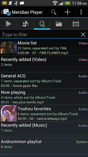 PlayQ rather than playlists, can handle videos, musics, and their MIXTURE. Also, you can put a folder, an artist, an album or like that into a PlayQ.