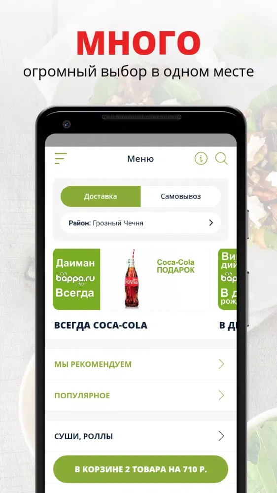 Our service covers not only the major cities like Grozny, Nazran, and Magas but also extends to regions and villages across Chechnya and Ingushetia. Whether you're craving Japanese delicacies or Italian favorites, we've got you covered. Every day, we strive to improve our service, ensuring that we remain the leaders in satisfying your gourmet desires.