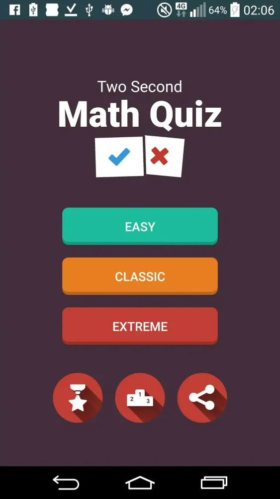 Two Second Math Quiz is an engaging application designed to challenge your mathematical prowess, quick reflexes, and decision-making abilities under the intense pressure of time constraints. This app offers a unique and entertaining method to test how many math expressions you can solve within a brief window of just a few seconds. The simplicity of the math problems is balanced by the complexity of solving them swiftly.