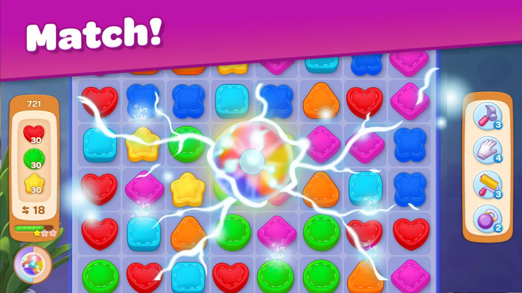 - CHALLENGE: Engage in exclusive match-3 levels that are not only fun but also feature unique boosters and explosive combinations.