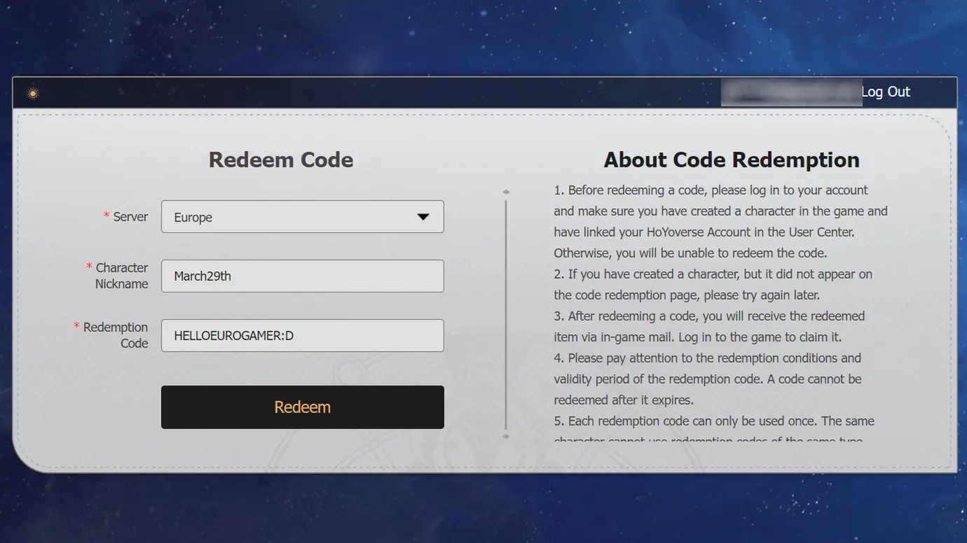 How to redeem codes in Honkai Star Rail