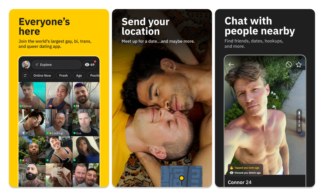 Grindr is the world’s leading free dating app catering to the LGBTQ community. Whether you identify as gay, bisexual, transgender, queer, or are simply curious, Grindr offers a straightforward way to meet new people for friendships, hookups, dates, and more.