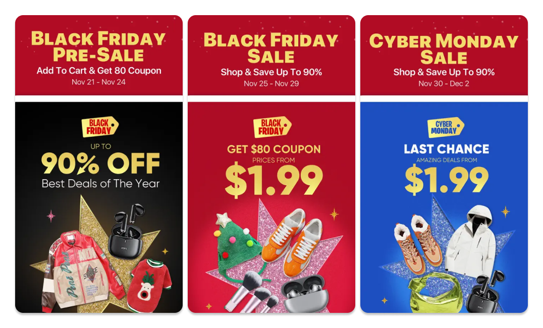 • Budget-friendly options across categories like fashion, electronics, and home goods.