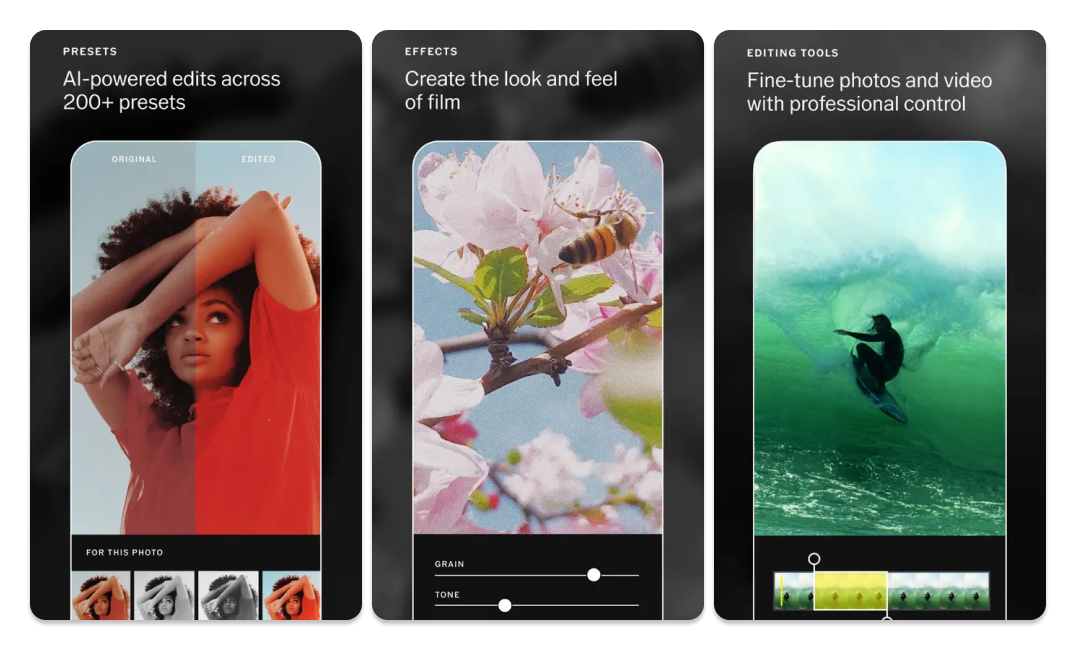 If you’re seeking inspiring communities and stunning photo editing visuals, VSCO is the app for you. As a fan of VSCO myself, I appreciate its professional-grade filters that mimic the classic film effects of renowned photography brands like Fuji and Kodak (check out their preset guide!).
