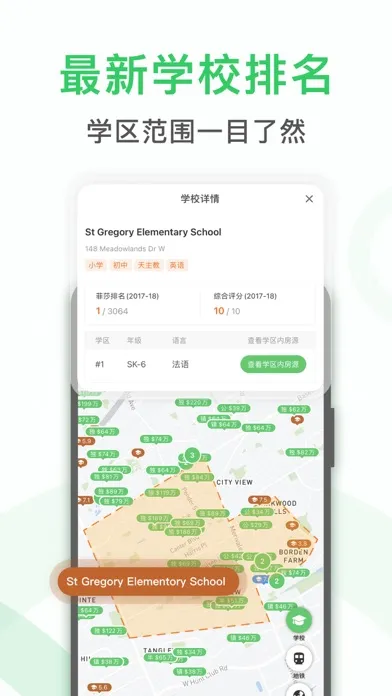 - 学校信息:包含排名及学区范围,轻松找到优质学校的周边房源;