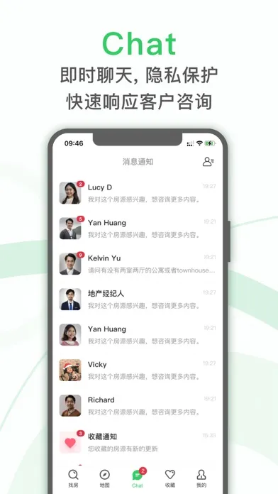 - 搜索筛选意向区域,一键订阅即可实时接收区域内所有房源变更通知。