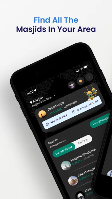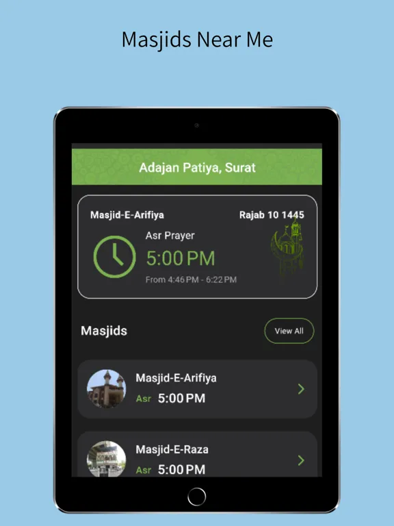 Wherever you go just use this app to find masjids around you. Every registered member can keep Salah timings updated. Help each other to offer Salah on time in masjid and be a part of noble cause