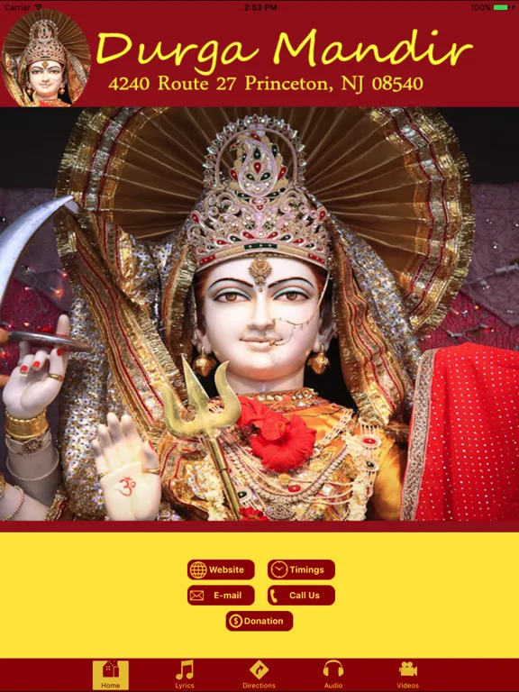 This app is dedicated to Durga Mandir (Temple), Princeton, NJ. This app has the following pages