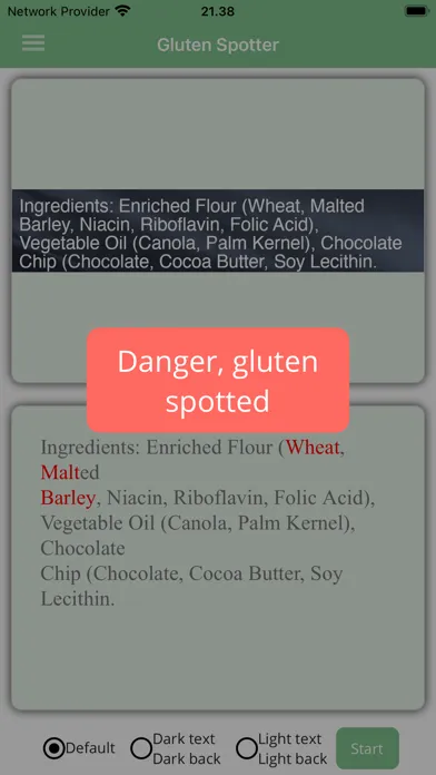 Our app helps you quickly determine if a product is gluten-free by scanning images of ingredient lists in various languages. Perfect for anyone needing an extra check, especially those with celiac disease or gluten sensitivity. Simply snap a photo of the ingredients, and the app will analyze and inform you about the presence of gluten. No sign-up or registration is needed.