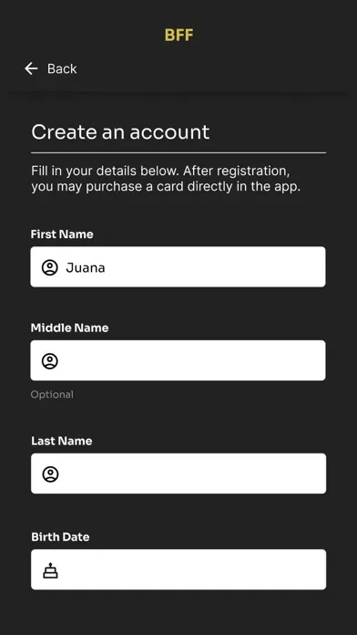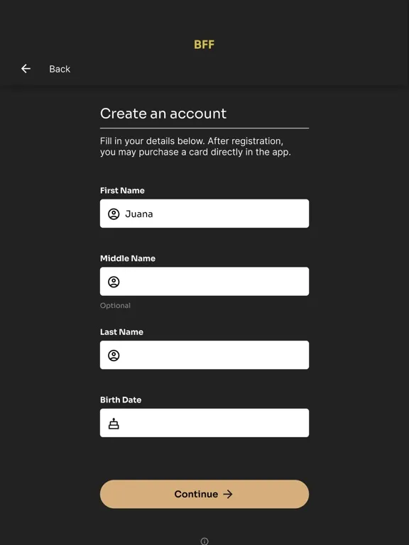 • Not yet a BFF Card holder? No problem, create an account without visiting the restaurant