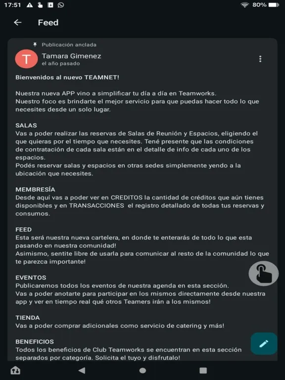 Welcome to Teamworks, the coworking space network in Argentina! With our app, you can effortlessly reserve meeting rooms and desks, keep track of your bookings, and stay connected with our vibrant community.