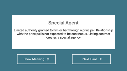 This app is a Vocabulary Flashcards app that will help you study for your Real Estate Exam. Learn all the important words and it's meaning to pass the test. Very simple to use. Remember, as the exam questions come at you randomly, the Flashcards will show the vocabulary in random order.