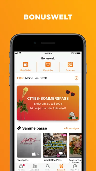 Eines der beliebtesten Features ist die CITIES Bonuswelt. Scanne in der App bequem Rechnungen und Sammelpässe von CITIES Partnern und sammle Lose. Damit unterstützt du nicht nur die regionale Wirtschaft, sondern erhältst Ermäßigungen, Gutscheine und die Möglichkeit, an exklusiven Gewinnspielen und Aktionen teilzunehmen.