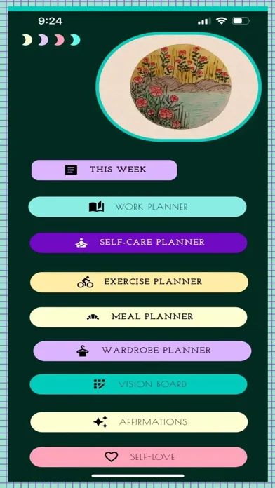 - self-care planner: plan calming morning routines, relaxing bed-time routines, skincare, spa sessions and more
