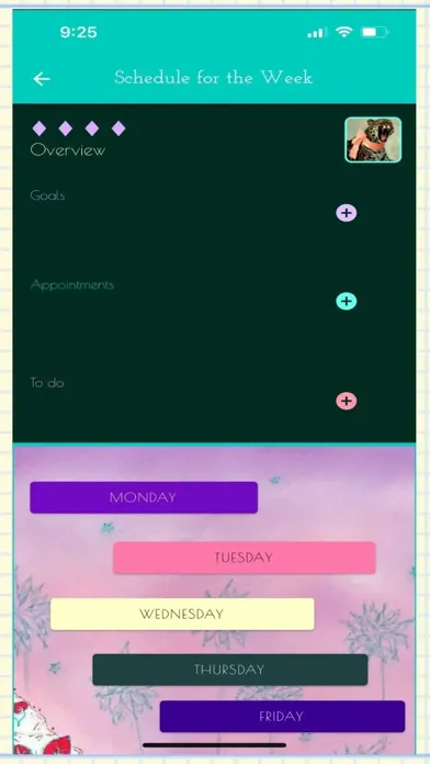 - weekly schedule (free): weekly goals, appointments, to-do lists, and detailed daily schedules