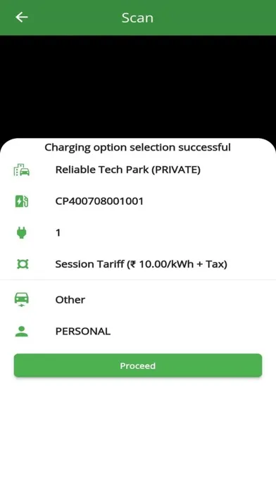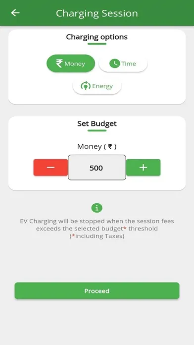 . Simple scan action, select type of charging (Time/Energy) and proceed.