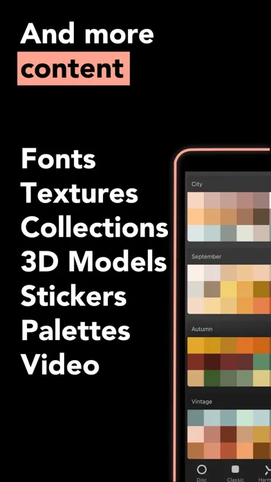 Dozens of palettes with hand picked colors made by colorists will help you to rocket start your art with right colors.