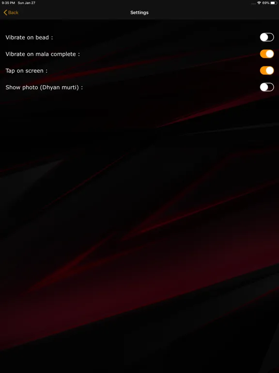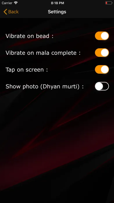 Vibrate on mala complete: you can turn on/off vibration when you finish Mala.