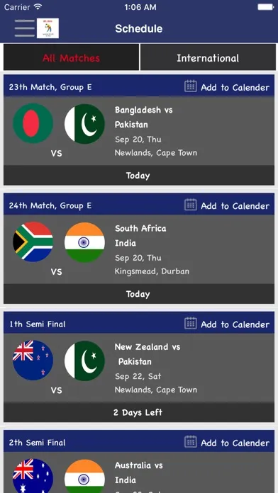 - Match Schedule