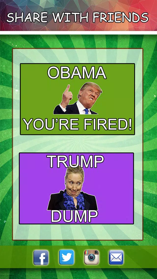 This application is not affiliated in any way with Donald Trump or the Republican Party and Hillary Clinton or the Democratic Party. Developed for entertainment purpose only.