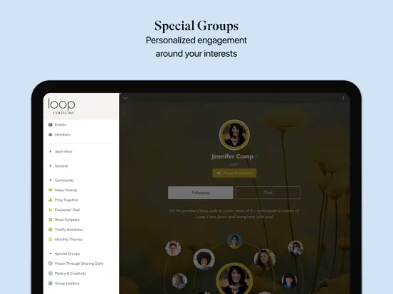 Loop Collective is a place for the open-minded, the brave, and the curious—women who seek to deepen their relationship with God. Through a unique combination of resources—prophetic devotionals, contemplative exercises, inspiring workshops and teaching, and life-giving sisterhood—Loop Collective helps women personally encounter God and live with confidence and purpose. The app is free to download.