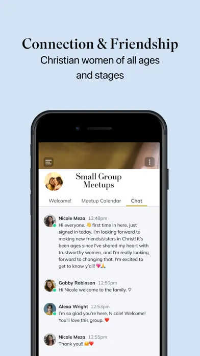 Follow your interests in the various spaces: Make Friends, Pray Together, Encounter God, Read Scripture, Testify Goodness, P.T.S.D., Poetry & Creativity, and Monthly Themes.