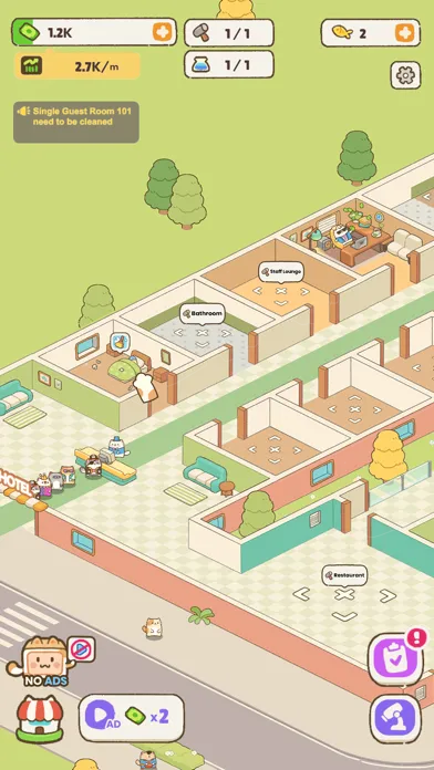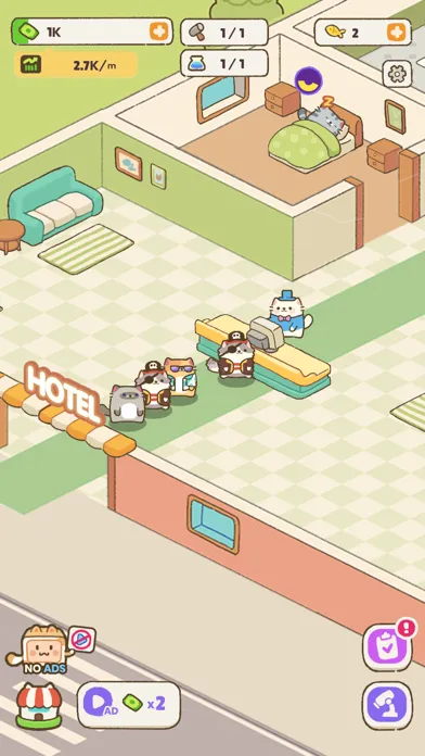 where you manage a cat hotel with rooms, a restaurant, and gym. All staff and guests are cats, with special characters like Super Cat. Customize, create a cozy atmosphere, and ensure happy guests. Experience joy in this delightful cat management game.