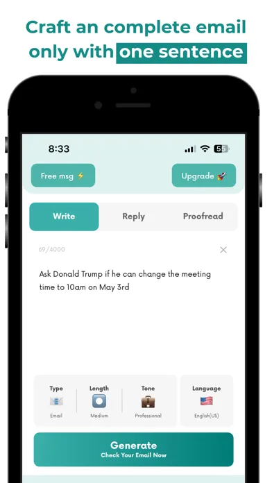 At the core of ASAP is its advanced AI business email generator. This feature utilizes superhuman language processing and machine learning algorithms, akin to ChatGPT's capabilities, to understand the context and purpose of your intended email. Whether you're reaching out to a new client via Gmail, following up on a meeting through Outlook, or keeping your team updated on Yahoo Mail, ASAP crafts personalized, professional, and compelling emails. The generator adapts to various tones and styles, ensuring that every email feels personal and directly speaks to the recipient, regardless of the email platform you're using.