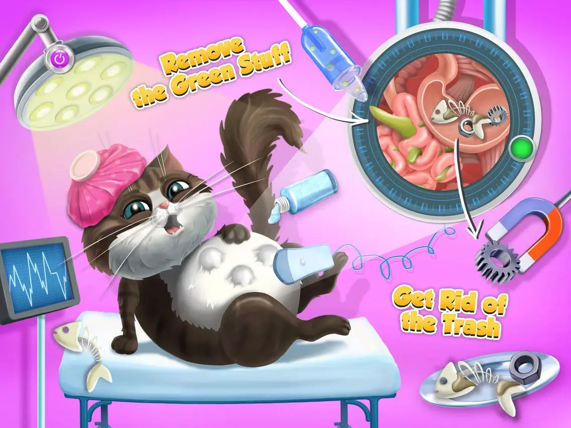 · Carlo the cat ate too much fish, X-ray his stomach and make the tummy pain go away!