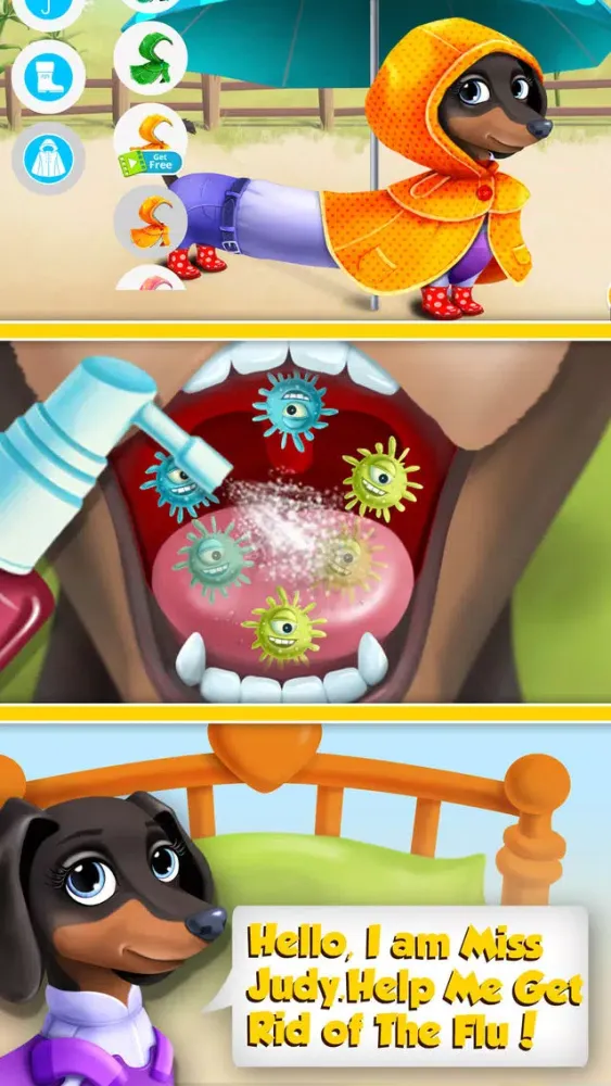 · Miss Judy the Dachshund has terrible flu, help her get well and dress up with warm clothes!