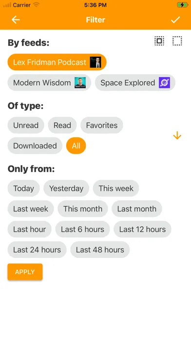 - RSS Reader can filter your feed by channels, time ranges, star, unread