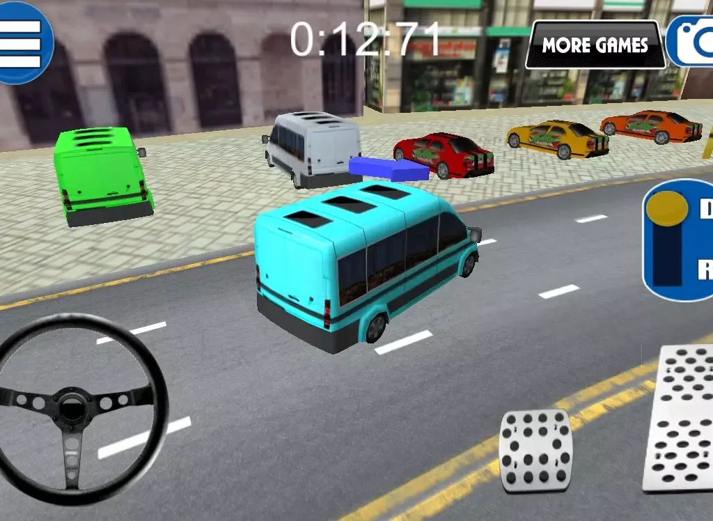 You can select your favorite parking frenzy 3d trailer van before you start the game. There are four different vehicles that you can choose. Four different colors, four different cars. Pick the one that you like the most to finish those heavy but different parking situations. When you’re playing, you can choose between different views. If you like to feel like the real driver, you can take the driver seat by clicking on the camera change icon. And if you like to see the whole car while driving you can just stay the same way that the car is starting on. Test your driving ability in this 3d parking simulator.