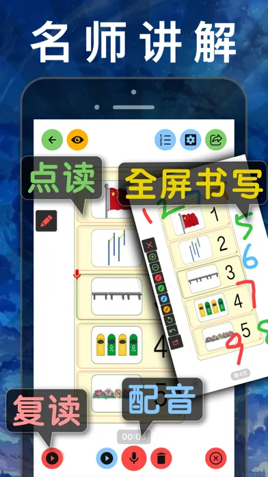 6、小学语文同步学、笔画笔顺书写练字功能;
