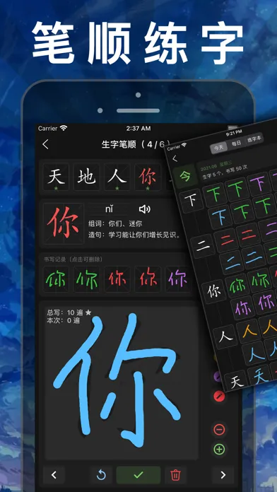 生字训练:手写板,拼音练习、笔顺笔画书写