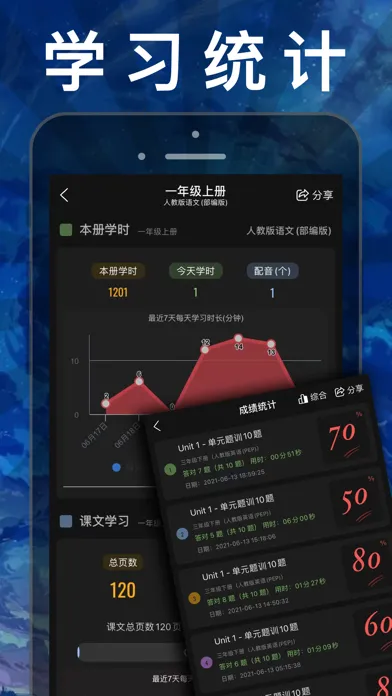 学习成就:图表统计学习情况,孩子的学习情况、训练成果五目了然。