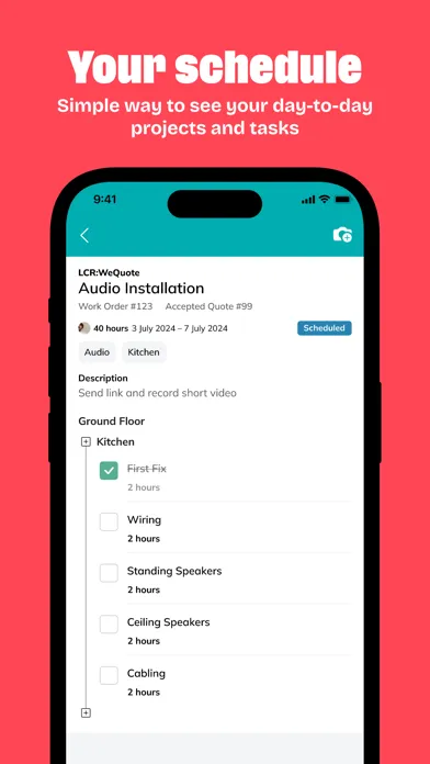 Field engineers use Snagg to easily log the time spent on each aspect of a project. This data links back to WeQuote and is measured against the allocated labour.
