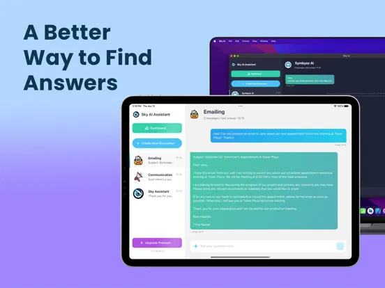 Our app is available in a monthly or annual subscription plan with a free trial. Both plans offer all the great AI chat features to help you work smarter and faster on all devices, plus regular app updates and improvements, for an extremely low rate.