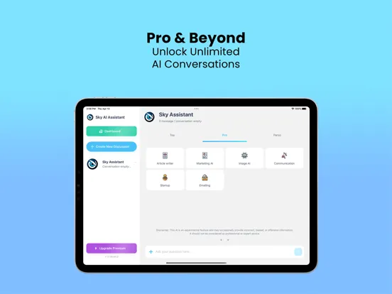 Welcome to Sky! A chat with specialized AI for a wide range of tasks!
