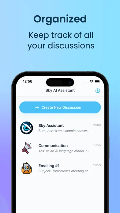 Our AI chat app automatically follows discussions and allows you to arrange them by thematic, so you never lose track of what you did chat about.