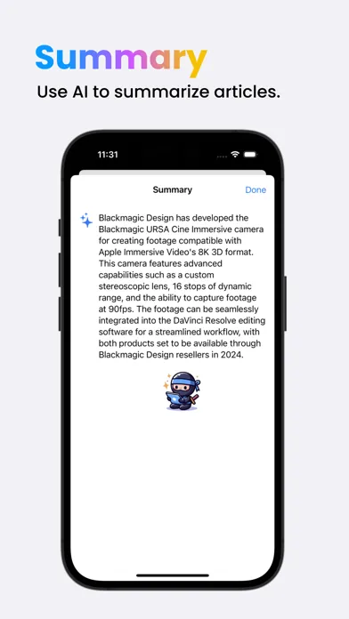 Save time with concise, AI-generated summaries that give you the gist of each article at a glance.