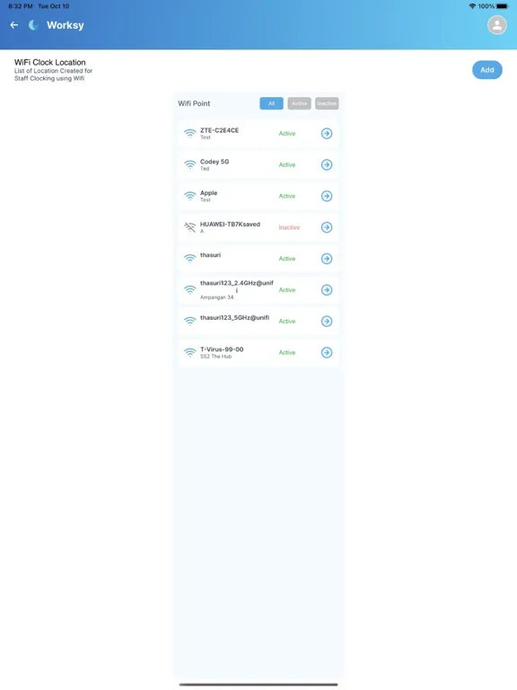 Wifi Point Clocking: Ensure employees are at the right place. With Wifi Point Clocking, employees can only clock in when connected to the designated workplace Wifi, ensuring authenticity.