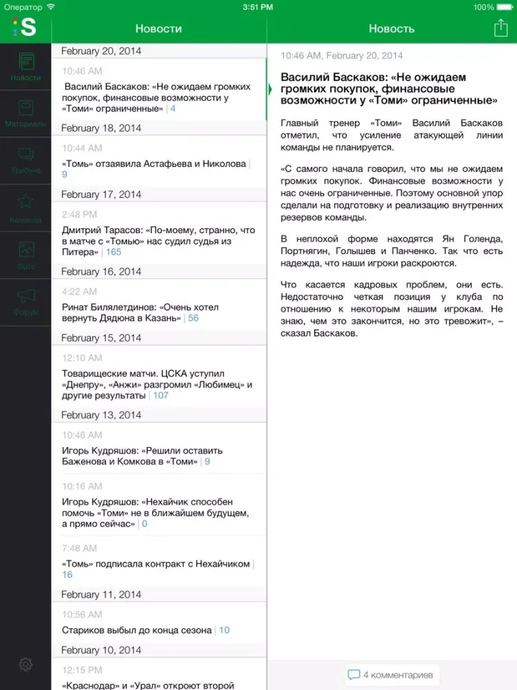 Томь+ Sports.ru iPad Screenshots