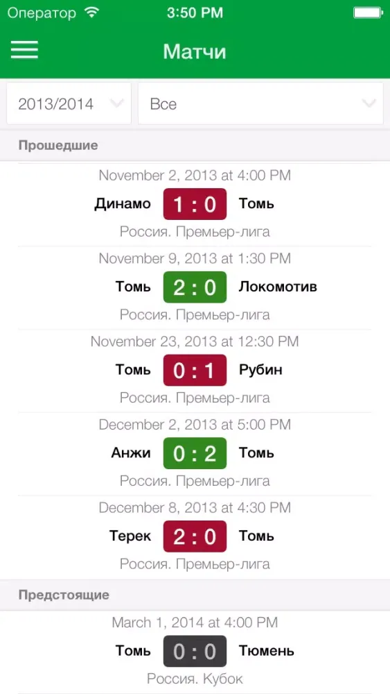 – Полная статистика всех матчей клуба в режиме онлайн