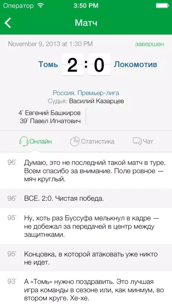 – Текстовые трансляции матчей, календарь и таблица чемпионата России по футболу
