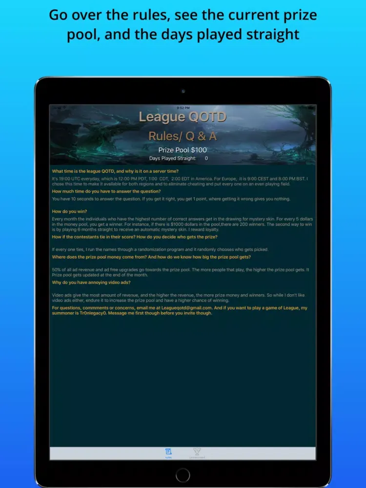 Is the League QOTD -For League of Legends on PGYER IPA HUB free to download?